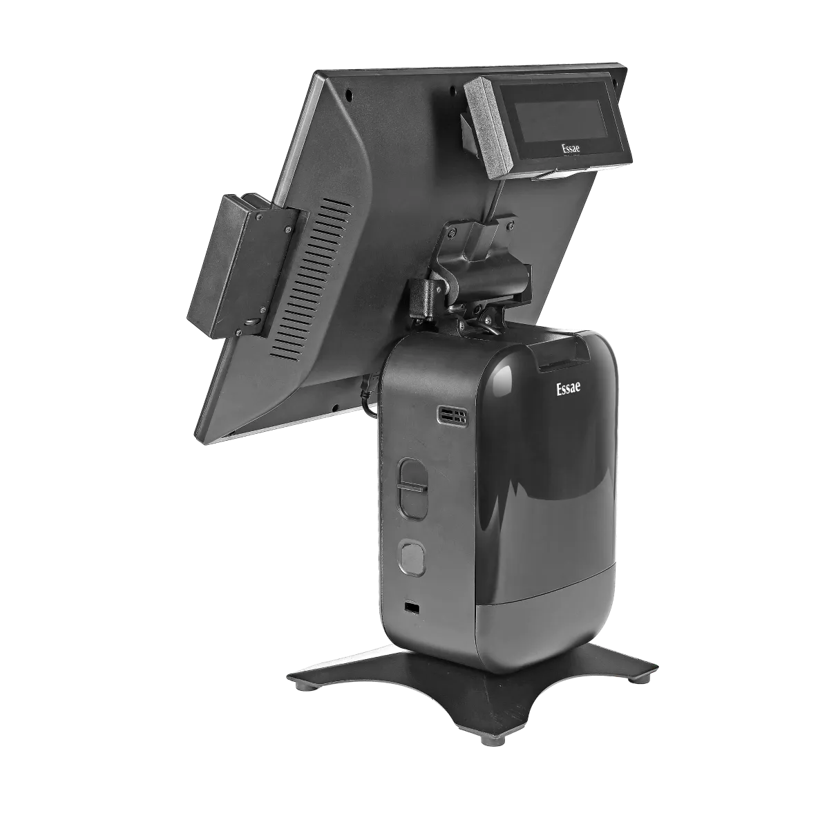 The Essae POS-865J pos with printer is a compact, high performance All-in-One POS terminal designed for modern retail and hospitality environments. Powered by the latest 10th Generation processor, it combines speed, durability, and space efficiency in a sleek form factor. Its standout feature is the integrated 3-inch thermal printer with auto cutter, eliminating the need for separate printing devices and streamlining counter operations. The system includes a 15 inch true flat PCAP touchscreen, M.2 NVMe SSD, and supports both windows and linux, offering flexibility across business setups.